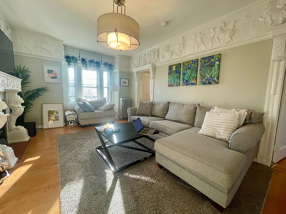 AVAILABLE MARCH 1st One of a kind property in Brighton. Top floor unit with 10ft ceilings throughout, laundry in unit and a massive porch with views of downtown Boston. Gleaming hardwood floors and stainless steel appliances. Beautiful decorative fireplace and unique crown moldings. HEAT & HOT WATER and parking are included in the rent. LAUNDRY IN UNIT. Pet Friendly! March 1st move in 12 month lease