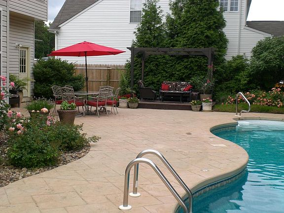 WOW!! There is nothing spared in this custom colonial,boasting 2502 sq ft 4 BR 2 1/2 bath , Gourmet LG eat in kitchen,formal living + dining room.. Great room w/ fireplace. Master suite w/ his and her walk-in closet and sitting rm....Extra large windows overlooking a marvelous in-ground pool combined with beautiful manicured fenced in yard. Has a full high basement w/ Bilco doors to the outside and a over sized 2 car garage...Located in a lovely community on a cul-de-sac.