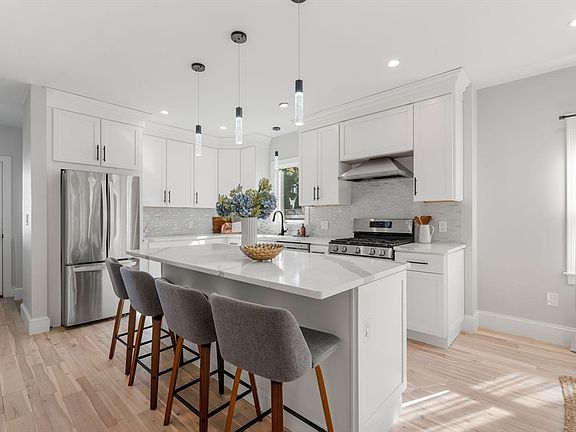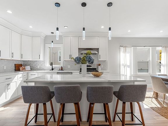 Discover a unique opportunity in a sought-after location, just steps away from the town playground and parks. This beautifully renovated two-level condo seamlessly blends modern luxury with comfort. The spacious, open-concept living and dining area features a cozy wood-burning fireplace and ample windows that fill the space with natural light. The chef's kitchen boasts quartz countertops, stainless steel appliances, a convenient drawer microwave, and sleek white cabinetry, all accented by contemporary light fixtures and recessed lighting. The inviting primary suite includes a luxurious attached bath with a quartz vanity and tiled shower. An additional bedroom and bathroom complete the main level. Retreat to the lower level, where you'll find a family room, a third bedroom, and another full bathroom. Off street parking, central AC, and in-unit laundry! Conveniently located less than a mile from Belmont Center, and within a top-rated school district, including the new high school!
