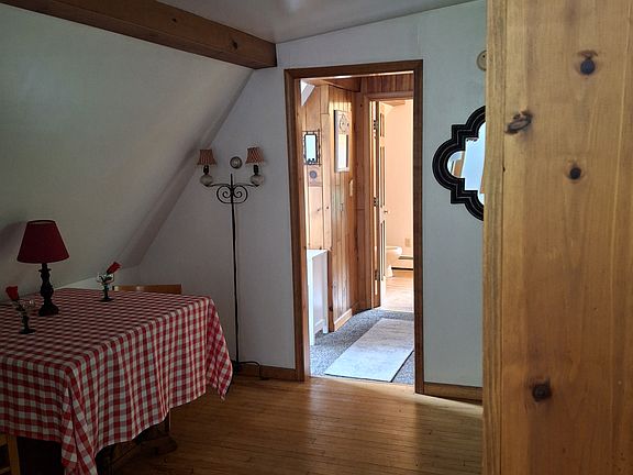 Lovely apartment above converted garage/art studio. Cozy one bedroom, large living room, dining area, kitchen has open service to living area, changing room next to bathroom. Dishwasher, microwave, air fryer, crock pot, and frig support the comfortable contemporary kitchen -no stove-. Open deck outside kitchen to enjoy the fresh mountain air. Private yard area. Assigned off street parking. New rugs and freshly painted. Wood floors add a relaxing touch to the ambiance of the home. Set on a tranquil parcel just outside Port Jervis, a short walk to downtown, Bon Secour Hospital and the train station Additional storage garage available for +450/month