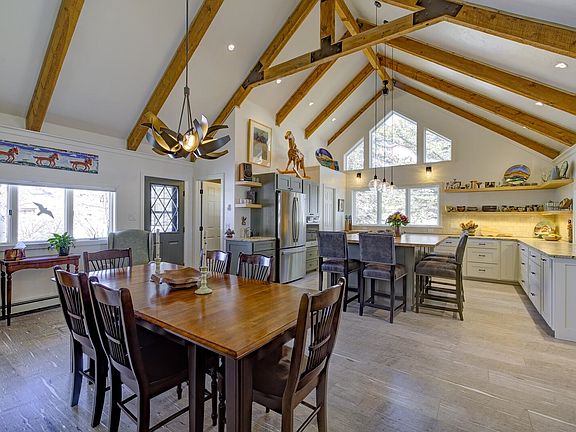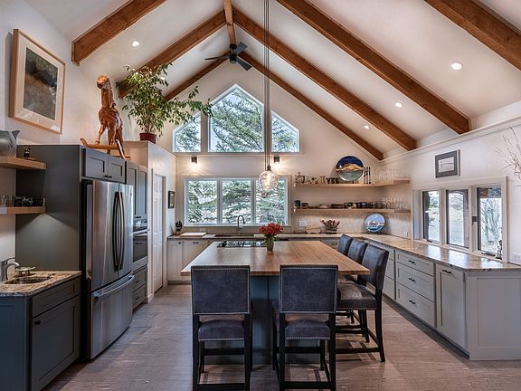 Nestled in a serene, picturesque setting, this stunning mountain home offers the perfect blend of luxury, privacy, and 7.75 acres of natural beauty. Enjoy the ultimate comfort with three spacious bedroom suites and an additional powder room, this home effortlessly combines elegance and functionality. Step into the renovated custom kitchen, a chef’s dream with vaulted beamed ceilings, a massive island, ample pantry space, and expansive windows that frame breathtaking views of the surrounding wildlife and vibrant landscape. The mature trees and thoughtful landscaping create a peaceful, private oasis, while panoramic mountain vistas provide a stunning backdrop to everyday life. The property includes a horse-friendly corral and a roomy two-car detached garage with a heated studio/workshop and durable metal roof. Tucked away yet conveniently close to town, the reservoir, and public lands, this well-maintained home offers the best of both worlds—tranquil seclusion and easy access to amenities. Whether you’re unwinding in the restful ambiance or entertaining guests, this keeper of a home promises a sublime lifestyle for years to come. Don’t miss your chance to own this mountain masterpiece!