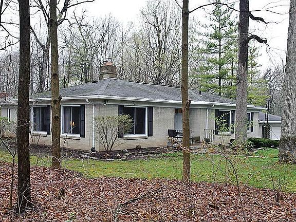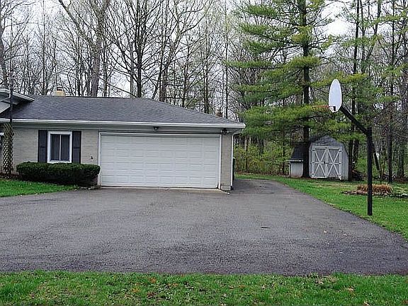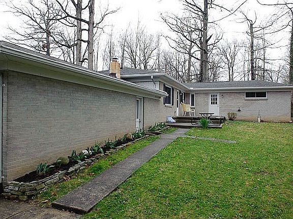 Gray brick ranch style house! Living room has wood burning stove insert into fireplace and beautiful replacement windows for natural light. Hardwood floors in the dining room and kitchen. Convenient 1st floor master bedroom with master bath, and private back door entrance right outside of the master suite. Large back porch overlooks gorgeous wooded lot. Finished, walkout basement with additional full kitchen and bath. Oversized 2 car garage.