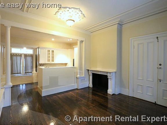 1st floor apartment. All hardwood floors. Heat and hot water are included in the rent. Enormous living room with dark hardwood and lots of custom built-in shelves. Beautiful galley open concept kitchen with custom cabs, granite, stainless appliances including dishwasher. Open area in back could be a bedroom or a dining room. Apartment has very nice built-in Murphy bed. Very cool shared roof deck. Nice private back porch and shared yard!! Big walk in closet / storage area. Street parking only. Pets negotiable on a case by case basis. Ref 130822