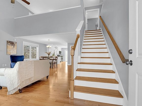 This gorgeous condo is nestled in a 55+ community at the end of the cul de sac, offering a serene and welcoming environment. The kitchen boasts granite counter tops, white cabinets and hardwood floors with an open floor plan to a dining area and living room with vaulted ceilings and a cozy gas fireplace. Perfect for when having guests over. The spacious primary bedroom with ensuite and laundry finish up the main floor. The second floor offers a second bedroom, bathroom and loft space for an office or extra living space overlooking the living room below. Step outside to the back deck, your personal oasis where you can enjoy your coffee and listening to the birds as this unit abuts conservation land. Don’t miss out on this gem!