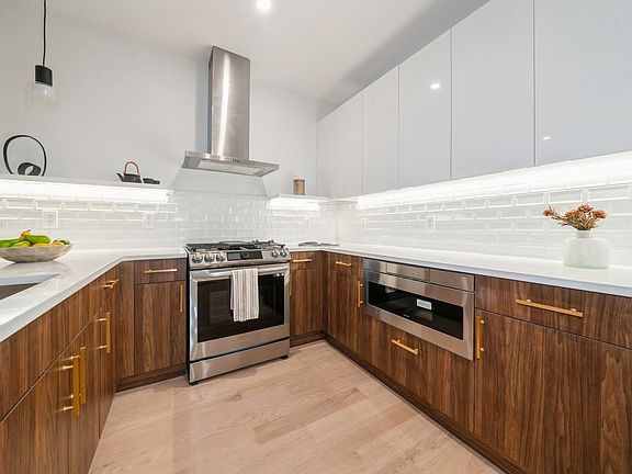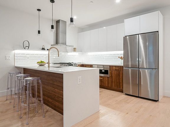 The wait is finally over, the 22 Bright St Condominiums are here; located on a quaint block, surrounded by a bevy of dining options, schools, parks, and much more! Step inside your new home and soak in the ambiance with recessed lighting complementing against the hardwood floors (which have additional soundproofing underlayment added). An open concept floorplan gives ample space to host a full living and dining area set. Head over to the kitchen and gaze upon the lavish two-toned cabinetry with wood-style finish below and gleaming white cabinets above, stone countertops and mosaic backsplash, with state-of-the-art stainless-steel Samsung, Sharp and Whirlpool appliances, and low-hanging pendants to complete the modern look. Two great size bedrooms with the primary bedroom being an en suite with double vanity and includes a large walk in closet and rear deck. Bathrooms feature wall to floor tile, a modern style vanity with the complimentary wood style finished doors, an oversized walk-in shower, and gold accents. Stackable washer dryer in unit. Get this before its gone!