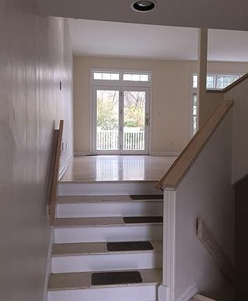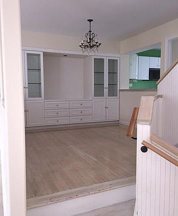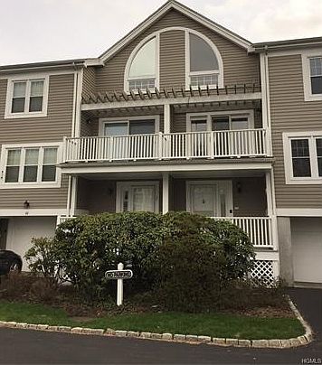Gracious two bedroom townhouse situated on a quiet cul-de-sac in Brookridge Court, Rye Brook. Unit back up to woods and has an inviting front porch which leads in to entryway, with closet and powder room. Bright living room has fireplace and door leading out to private deck. Formal dining room with beautiful built-ins, leads to sunny eat-in-kitchen. Stairs lead to open den/family room or office with balcony. Master suite has loft that is perfect for den/office/gym space. Second bedroom has private balcony; hall bath and laundry complete the level. One car garage and large unfinished basement for storage. Easy, accessible guest parking near unit.