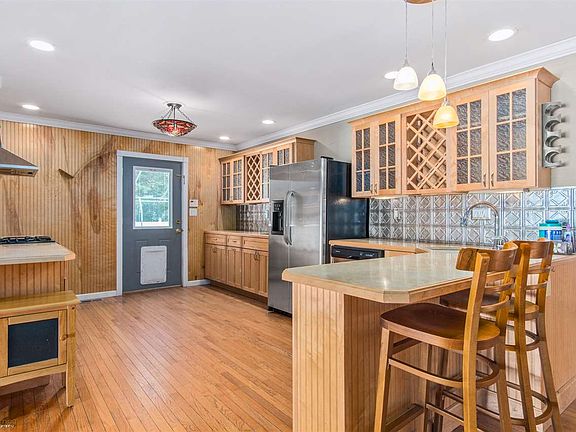 Exceptional family compound with privacy galore consisting of the main house, charming 1 bedroom guest house with spacious living room, high ceilings, very up to date kitchen, center work island, half bath, central air, natural gas heat, and attached garage, and a second private guest house offering a living room/bedroom combination with washer and dryer, full bath with whirlpool tub and huge walk in closet, wall air conditioning unit, half bath. This unique property offers collectively over 2760 sq.ft. of living space. The main house, features a total of 3 bedrooms, 3 full bathrooms and bonus rooms, huge open floor plan, living room with vaulted ceilings, dining room, fully equipped kitchen, laundry room and second floor master suite with indoor and outdoor private balconies, large walk-in closet and master bath. It has 2 zone natural gas heat and 2 zone central air to keep you cool in the summer and hot in the winter. All this is situated on almost 2.5 acres of bucolic cleared and wooded private property. If you have a large extended family or have many guests during the summer months this property is for you!