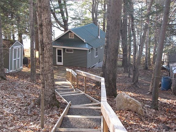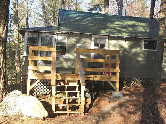 Welcome to the Lake. This is a move-in ready camp with private sandy shoreline. Many improvements including bathroom, new deck and steps leading to the camp. Metal roof and circuit breakers complete the upgrades. Metal bestos chimney for the wood stove. Furniture and kitchen utensils are included as well as an aluminum boat. Bring your guests because the loft offers sleeping quarters. Located only minutes from I295 and I95. Pleasant Pond is a 750 acre bass fishing tournament pond. Sunset views.
