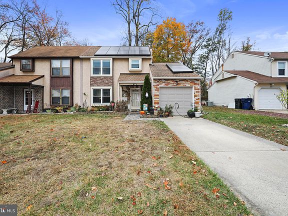 WOW! Schedule your appointment today to see this Beautifully Updated and Maintained 3 Bedroom, 1.5 Bathroom Twin Home in the much-desired Rainwood Neighborhood in Voorhees, NJ. Students will be part of the renowned Voorhees schools, including the esteemed Kresson School! Upon pulling up to your new home, you will be immediately impressed by the curb appeal. The front exterior comes with a 1-Car Driveway, a 1-Car Garage, a NEW Front Walkway, a Covered Front Porch, NEW Trim/Siding around the Windows and Garage Door, and Gorgeous Landscaping. Enter into the Large Living Room featuring Wood-Like Flooring and Fresh Paint. The Dining Room sits right off of the Living Room and Kitchen, which is Great for Entertaining, and comes with Wonderful Wood-Like Flooring, Fresh Paint, a Ceiling Fan/Light Fixture, and a Large Sliding Window with Great Views of the Beautiful Backyard. Your Updated Eat-In Kitchen is next. This Gorgeous Room features NEW Quartz Countertops and Backsplash, NEW Cabinet Doors and Drawer Fronts, Refinished Cabinets and Drawers, Fresh Paint, Stainless Steel Appliances, a NEW Garbage Disposal, a Pantry, Recessed Lighting, a Big Kitchen Island with a NEW Quartz Countertop and Seating for 3, and it opens to the Family Room. Your Family Room boasts Wood-Like Flooring, a Vaulted Ceiling, Fresh Paint, a Wood-Burning Fireplace with Decorative Wood Surround and a Mantle, and a NEW Pella Glass Sliding Door to our back. Enjoy having an Updated 1st Floor Powder Room too. Right off of the Family Room is a door leading you into the Laundry/Utility Room and then into the Fantastic Finished 1-Car Garage Space. This Great Room has been Drywalled and Painted, has Recessed Lighting, and Baseboard Heat! As you wander upstairs, head into your Primary Bedroom featuring NEW Wood-Like Flooring, an 8x5 Walk-In Closet, and a door leading you into the Updated Full Bathroom. The 2nd Bedroom is across the hall and comes with NEW Wood-Like Flooring, a Big Closet, Crown Molding, and a Chair-Rail. The 3rd Bedroom also comes with NEW Wood-Like Flooring and a Closet. Your Updated Full Bathroom has a Shower/Tub with Amazing Tile Surround and a Newer Sink/Vanity. Next, head out back to the Fully Wood Fenced-In Backyard with a Freshly Painted Wood Deck, a Large Shed, a Tree House, Gardening and Flower Beds, and Great Yard Space! This Stunning Home also comes with a NEW HVAC system, NEW Pella Windows, a NEW Mailbox Post, NEW Front Gutters, a NEW EV Charging Station for Electric Cars, and a Money Saving Solar System. Dining and shopping, including the Promenade Mall, are conveniently located just minutes away. No HOA fees and low taxes make this home more affordable. Don't miss the opportunity to make this your home today.