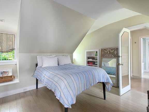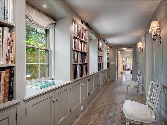 On a bucolic, quiet lane, this colonial home, guest house and barn have been sensitively renovated to the highest standards by noted architect. The interior spaces are filled with bespoke design and offer flexible living. Stunning step down living room with high ceilings, fp and french doors to terrace with outdoor fp. Formal dining room. Chef's kitchen with charming eating area/sitting room with fp. Large family room. Lovely master suite with fp and high ceilings plus 3 or 4 more bedrooms on second level with potential extra bedroom on lower level. 4 1/2 baths. 3-story guest house with 3 bedrooms, 1 full/2 half baths and ample garaging. ''Party'' barn with attached well equipped potting shed and storage rooms. Sublime, private pool setting surrounded by world class gardens.