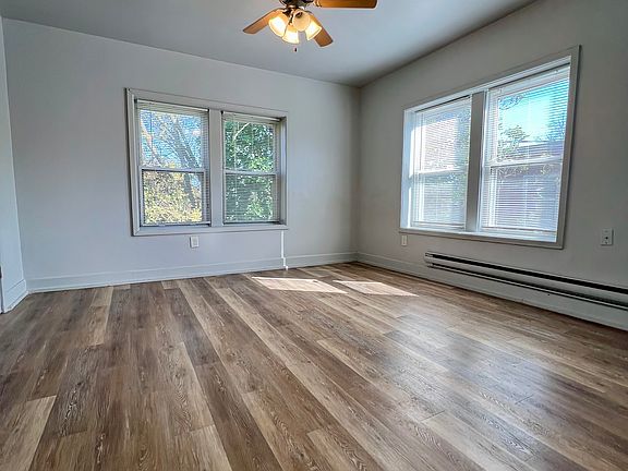 Discover the charm of this freshly updated 1-bedroom apartment. Enjoy modern touches like brand-new window treatments, solid oak kitchen cabinets with a brand new counter-top, and energy-efficient LED lighting, complemented by ceiling fans in both the living room and bedroom. The entryway, bathroom, dining room, and kitchen boast durable ceramic tile flooring, with the bathroom fully tiled from floor to ceiling for a clean, polished look. The bedroom and living area feature stylish, newer luxury vinyl plank flooring. The kitchen comes equipped with a full-size gas range and refrigerator. Stay comfortable with electric baseboard heating across two climate zones. Convenient on-site coin laundry is available. Tenants are responsible for gas and electric utilities, while the landlord covers water, lawn care, snow removal, and trash. One assigned parking space is available for an additional $35/month. Move into a bright, modern space designed for comfort and convenience! Total Due to move-in: $2,070. This includes first month's rent of $935, security deposit of $935 and a move out cleaning fee. 1 cat allowed per unit, pet fees apply ($300 move-in pet fee, plus $35/month). 1-year lease required. Resident pays gas & electric, landlord pays water, lawn, snow, trash. 1 Year Lease Required. No pets allowed. Water included in rent. Tenant is responsible for electric & gas.