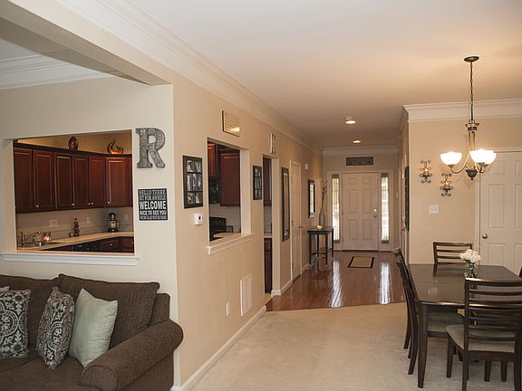 Welcome home! This well-appointed 9 year young townhome features 9-foot ceilings, glistening hardwood floors in the foyer, neutral paint and carpet, attached garage, basement and SO MUCH more! The open main floor living area is set up for easy entertaining. Large living room and formal dining room are open to one another with cozy neutral carpet and a charming corner fireplace. Sliding glass doors lead from this space out to the back patio. Your kitchen features an abundance of Cherry Cabinets with neutral counters and easy to maintain tile floors with plenty of space for an additional, more casual eating space. Upstairs you have your master suite with soaring vaulted ceilings, full bath and walk-in closet. Two additional spacious bedrooms are both neutrally painted and carpeted with ceiling fans and lare closets. The second full bath offers a large vanity and neutral space waiting for your personal touches! Convenient upstairs laundry room rounds out the upper level. Need more room? No problem! Downstairs, an unfinished basement with high ceilings can be found! The fenced in yard offers patio space off the living room making for an ideal entertaining space and it backs up to open fields for peaceful privacy! Best part? This townhome has no HOA fees and a One Year Home Warranty is included! The property is conveniently located very close to AC Expressway, local shopping and dining.