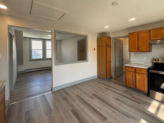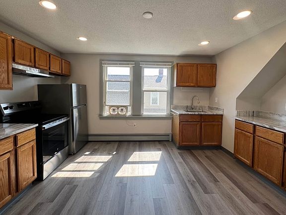 This beautifully updated 3rd floor apartment features 2 bedrooms and 1 full bathroom. The kitchen is equipped with brand-new appliances and granite countertops. It has been freshly paint throughout, has new flooring, and new light fixtures that brighten up the space. The bathroom includes a new vanity and updated finishes. Coin-operated laundry is conveniently located on-site. With stylish upgrades and practical amenities, this apartment is move in ready! This is a non-smoking rental. Pets are not preferred but may be considered on a case-by-case basis with an additional fee. A minimum credit score of 640 is required. Tenant is responsible for the full cost of a credit and background check. First month's rent and a $1600 security deposit are due at lease signing. Tenant is responsible for electric and heat (oil).