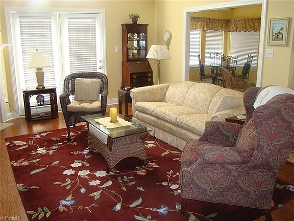 Stunning main level townhome in the Villas at Sedgefield. Easy access to both Sedgefield and Grandover communities. Private pool and clubhouse in this quiet and serene community. This beautifully decorated home with sparkling hardwoods throughout has 2 bedrooms, office/library behind french doors (can be converted back to 3rd bed if needed), sunroom and private patio. Kitchen has S/S appliances, granite countertops, glass/tile backsplash. Large garage and storage, wide driveway for RV or company.