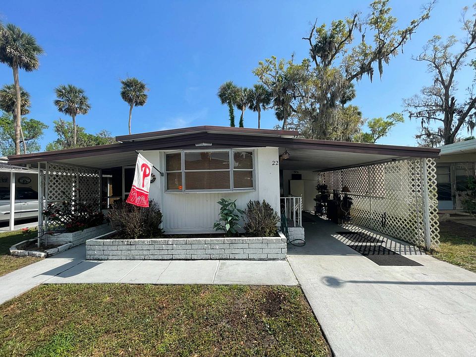 This is a compact style home that will save you on energy bills! Located in Carriage Cove 55+ land-lease community, where every resident has passed a background and credit check. Plenty of upgrades have been done to this home, wood paneling, solid flooring, a metal roof, and A/C that blows hard in the home to keep you cool. Please make sure to see the walkthrough video/Virtual tour. Lot rent is approximately $800/month not including utilities. Expect to pay about $960 with water, trash, sewer, cable and internet, and lawn care, including access to community pool, hot tub and clubhouse.