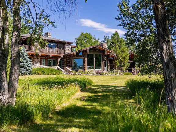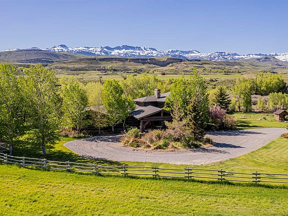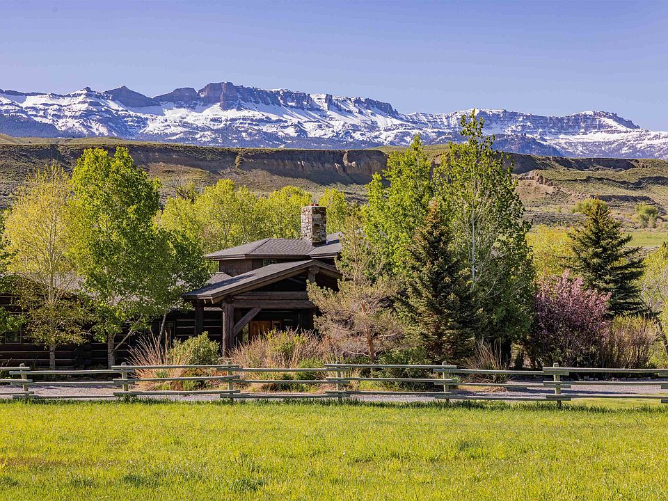 Premier river front 40.89 acre ranch offers seclusion and recreation in the stunning South Fork Valley. Approximately 33 acres of irrigated pasture sprinkled by two wheel lines, extraordinary water rights, wooded acreage with walking paths that wind along the almost 1000 feet of Shoshone River frontage. The river is a stone's throw down from the impressive main residence. Crafted with pure western living in mind, the logs were harvested and hand picked out of Canada. They are some of the grandest in the area and are beautifully sculpted into an exquisite estate. This three bedroom, four bath log home is wisely designed as it separates the sleeping rooms (each with it's own bath), offers several outdoor gathering porches, and the grand windows exploit the mountain and river views from every room. The kitchen is equipped with two dishwashers, Viking and Kitchen Aid appliances, granite worktops and a wood slate fireplace. Graced by a sophisticated stone (wood burning) fireplace, the great room is a show stopper. There is a butler's pantry/wet bar, library/den, and the primary bed and bath suite has an outdoor covered porch all it's own. Equipment barn, corrals, landscaping and sprinklers. Fish, horseback ride, ATV, hike, host dinner parties, enjoy a book fireside or in a hammock. Rest and recreate without ever having to leave your property. Enhance your living experience. This offering has all of the makings of an outstanding appreciable asset.