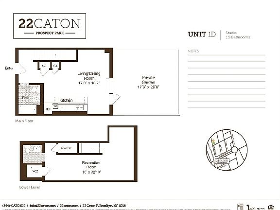 Apartment 1D is a Duplex apartment that could be a flex 1 bed, with a private patio and garden! 22 Caton is the ideal home for those who crave the energy of the city just as much as they love escaping it. Located just 2 blocks away from Prospect Park and a short walk away from the F, G, B & Q lines. 22 Caton gives you both the city life and a relaxing retreat to call home. In a city that can overwhelm crowds and packed agendas, 22 Caton gives you both a place to unwind and a home base to grow. With bright, eco-friendly apartments situated within an amenity-packed LEED Gold certified building, youll look out from the rooftop terrace and feel both in the middle of it all and a world away at once. Apartment Features: Private Patio & Garden Stainless Steel Appliances Granite counter tops Washer/Dryer In-unit Tons of Closet Space Hardwood Floors Sweeping Views Garbage Disposal Select private outdoor space Building Features: Concierge Tenant's Lounge Children's Playroom Bike Storage Pet Grooming Room Boule Court Roof Terrace Resident Garden BBQ Grills Landscaped Courtyard Yoga Room Fitness Room Prewired for Verizon Fios and Cable Live-in Superintendent Call or Email us to schedule a tour of the property today!