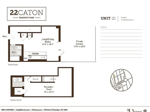 Apartment 1D is a Large Duplex apartment that could be a flex 1 bed, with a private patio and garden! 22 Caton is the ideal home for those who crave the energy of the city just as much as they love escaping it. Located just 2 blocks away from Prospect Park and a short walk away from the F, G, B & Q lines. 22 Caton gives you both the city life and a relaxing retreat to call home. In a city that can overwhelm crowds and packed agendas, 22 Caton gives you both a place to unwind and a home base to grow. With bright, eco-friendly apartments situated within an amenity-packed LEED Gold certified building, youll look out from the rooftop terrace and feel both in the middle of it all and a world away at once. Apartment Features: Private Patio & Garden Stainless Steel Appliances Granite counter tops Washer/Dryer In-unit Tons of Closet Space Hardwood Floors Sweeping Views Garbage Disposal Select private outdoor space Building Features: Concierge Tenant's Lounge Children's Playroom Bike Storage Pet Grooming Room Boule Court Roof Terrace Resident Garden BBQ Grills Landscaped Courtyard Yoga Room Fitness Room Prewired for Verizon Fios and Cable Live-in Superintendent Call or Email us to schedule a tour of the property today!