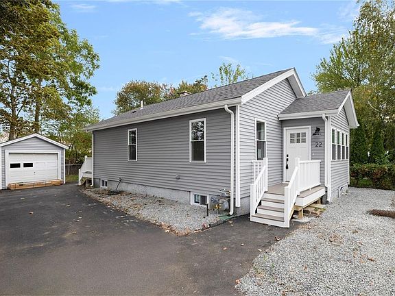 This like-new construction Ranch home, with its two bedrooms, one bathroom, spacious mudroom, finished porch/office area, and detached garage, seamlessly blends modern design with everyday functionality. Nestled on a fenced-in double lot near Warwick Neck and the renowned Rocky Point Park, this property has undergone thoughtful renovations, showcasing upscale finishes and a contemporary aesthetic. The naturally lit, open floor plan features a stunning kitchen with high-end cabinetry, quartz countertops, premium stainless-steel appliances, and stylish light fixtures—ideal for entertaining and daily living. Notable upgrades include a new roof, vinyl siding, windows, decks, driveway, insulation, drywall, flooring, and mini splits in each room. This home embodies the essence of turnkey living and presents an excellent opportunity for first-time homebuyers or those seeking to downsize.