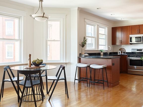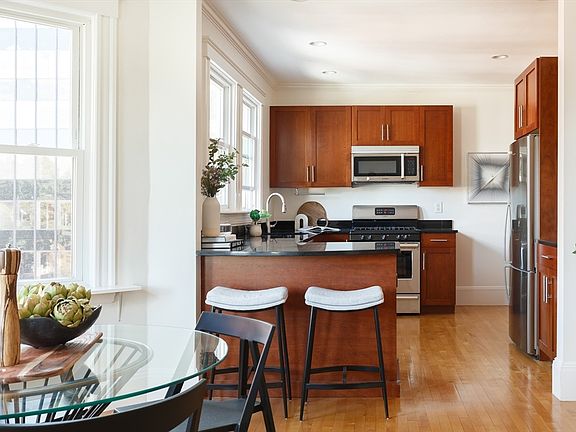 A 3BR + study top-floor flat surrounded by 17 large windows. Sunny corner penthouse at The Stanwood in the heart of Dana Hill. The Stanwood is a 1920s building elegantly renovated in 2007. A rare find: a pre-war building in Harvard Square that includes in-unit laundry and parking. Modern open layout anchored by a bright Cherry kitchen with peninsula, double windows at sink and a coffee dry bar. The natural light is outstanding with East and South-facing windows. The two front bedrooms face the Brick and Georgian homes of historic Centre Street. Third bedroom features double closets and a separate sunny nursery/office. Desirable parking space in the rear of building (space #i). Large storage closet in basement (room #12). Centre is a tree-lined street secretly tucked up a hill, in the shadow of Harvard campus.