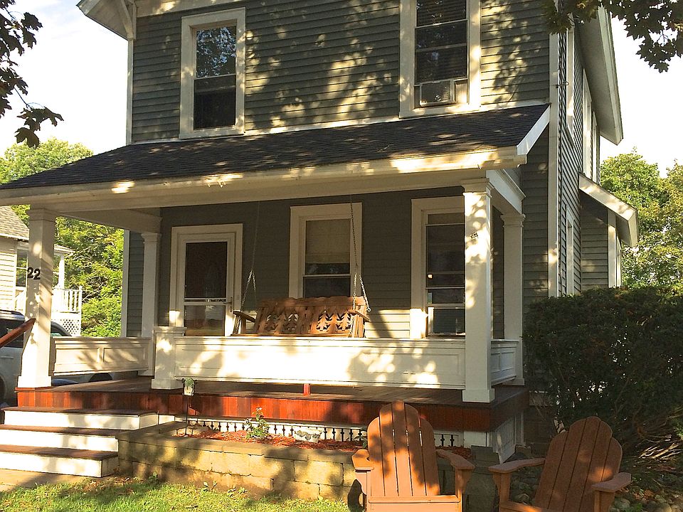 Relax on the front porch of this home located on a dead end street or entertain on the deck in the large back yard. Many updates: windows, vinyl siding, furnace, roof ,new entrance door , hot water heater. Completely renovated kitchen and bath. Large living room with window seat. Hardwood floors in the updates. Walk up attic for expansion. Built in book shelf going up the stairway. Walk out basement. Please see information sheet for further details.