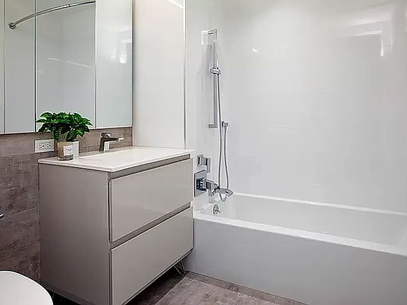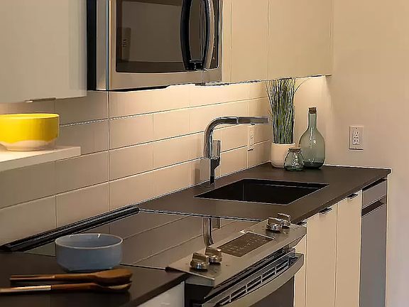 Bright, sunlit homes with views of downtown Brooklyn, ranging from studios to three-bedrooms. The distinctive faceted facade, by renowned architects CetraRuddy, provides many corner homes and varied window configurations, all built with a high level of craft and attention to detail. All apartments include in-unit washer and dryers. Modern open-plan kitchens offer a suite of stainless-steel GE appliances, including range, microwave and dishwasher, plus an Energy Star Beko refrigerator. White cabinetry with black countertop and accents elegantly complete the design. Large mirrored medicine cabinets, white stone countertops and chrome fixtures create a calm and refreshing bathroom. The majority of bedrooms at 22 Chapel are south-facing, allowing for comfortable, sunny and serene spaces, often with outstanding city views.