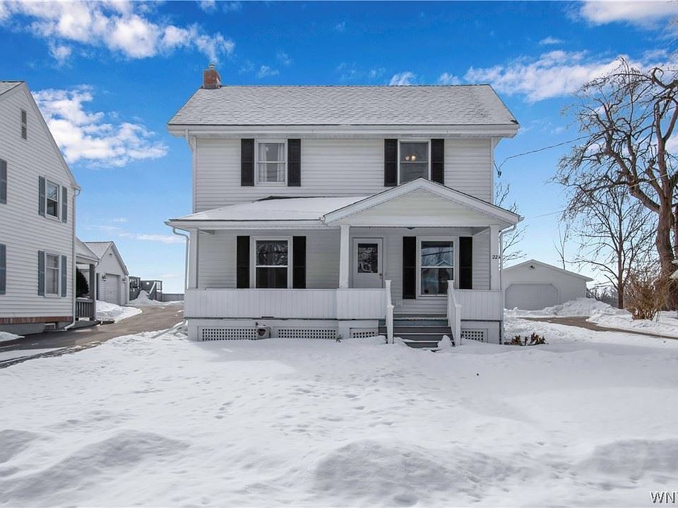 Delightfully updated Elba Village home with large detached garage & deep lot overlooking open farmland.Modern musts like brand new First Floor laundry/mudroom. Expansive open eat-in kitchen with vaulted ceilings, large island & space for second refrigerator/freezer. Original hardwood floors & natural woodwork. Possible additional first-floor bedroom with full bath. Recently extended parking area behind home. Additional 120 square feet added per Certificate of Occupancy dated 4/29/21.