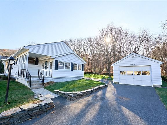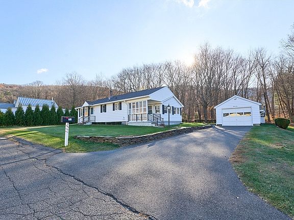 Well Maintained Ranch Style Home on a Dead End Street! Enter the house from the cozy front porch into a good size heated Enclosed Porch. In the "Room Levels", it's a Sunroom. Great for gatherings or just relaxing w/your favorite hobby or activity. Kitchen is spacious w/lots of original cabinets in good condition. Kit. appliances can remain. Living Room is large & bright w/ arched doorway & bow window. 2 Bedrms have ceiling fans w/lights & closets. 1 Bedroom has a built-in air cond. Full Bathrm has a linen closet. Basement is partially finished w/a Family Room & small Bar w/a built-in small refrigerator. Laundry appliances can remain too. There is a handy sink next to the Laundry. There is also a convenient private 1/4 Bath in the Basement. A sump pump in basement to keep it dry. Smith Boiler & newer oil tank. Detached garage has a "Summer Room" attached to it. Great for gatherings or a work shop. Great level yard w/views. Close to bike path, conservation land & Mt Tom Reservation.