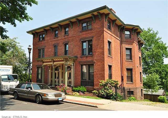 Circa 1880 remarkable top flr unit/scenic street downtown hartford/large rms/updated kitchen/huge master br w/rear balcony/easterly views of colt bldng!Firepl/wshr-dryer h-up in unit/cair/storage/att.Garage/seller to pay 6 mo hoa fees at closing !!