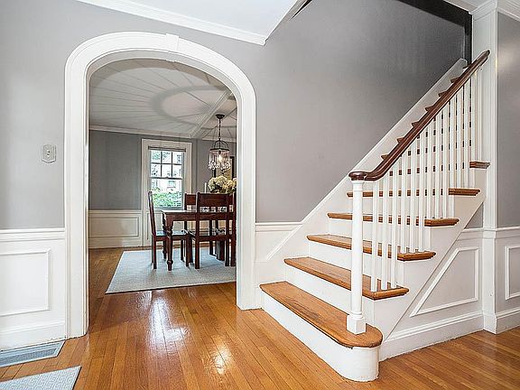 Stately center entrance five bedroom colonial in desirable walk to town Lincoln school neighborhood. Custom granite kitchen with sunny dining area. Great floor plan for entertaining with front to back firplace living room, family room and dining room. Full three floors of living space with two bedrooms and a full bath on the third floor. Master suite with laundry, enclosed patio area and private fenced in lot. This is a wonderful location and close to town, train and schools.