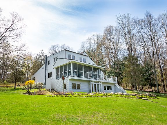 Apple Pond - Never before on the market, this hidden jewel enjoys breathtaking sunset views of St Johns Ledges and is a lovely mix of both rustic & light-filled modern. Entering the home's foyer, one is drawn down to the living room featuring a vaulted ceiling, fireplace, built-in sitting area, and access to an outdoor deck. This area opens to a dining area with its own access to a spacious screen porch, a galley kitchen, and cozy den which makes for a lovely guest room. The upper level of the home is dedicated to a master bedroom suite that takes full advantage of the views and incorporates a walk-in closet, private bath, and a home office. The lower level one finds two additional bedrooms that share a hall bath, separate laundry room, and a work area. After a splendid day at the pond there is a convenient outdoor shower. Property abuts hundreds of acres of State of CT forest and is only a few minutes from the village center of Kent as well as Metro-North making it great spot to entertain, explore the outdoors, and just relax.