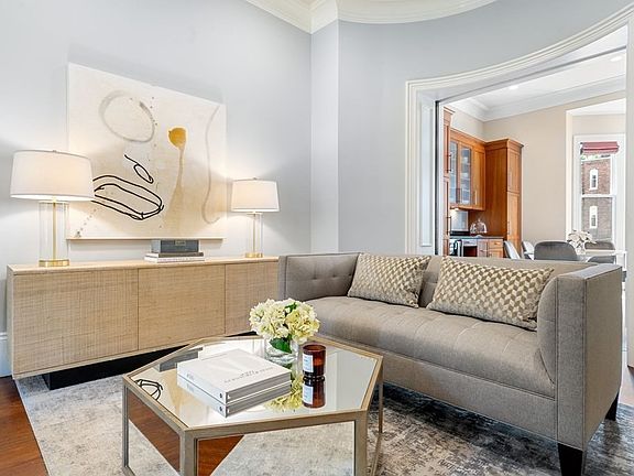 Originally designed by a renowned South End developer, this elegant residence blends historical charm with modern conveniences. It features a parlor and a first-floor living room, nestled among two duplexes. The kitchen is a highlight, equipped with top-of-the-line amenities like a Sub-Zero refrigerator and a new Miele dishwasher. The open-concept living space seamlessly integrates a custom-built office area. Entertaining is a pleasure on the spacious deck, accessed through beautiful glass doors. For a more formal setting, the restored wood sliding doors separate the dining area. With high ceilings and bay windows, the living area is inviting and can accommodate a 20-person dinner party. The first level includes a tastefully designed powder room. The lower level offers two generous bedrooms, each with a designer bath and ample natural light. A skylight brightens the hallway. Lastly, the residence provides direct access to 2 PARKING spaces.