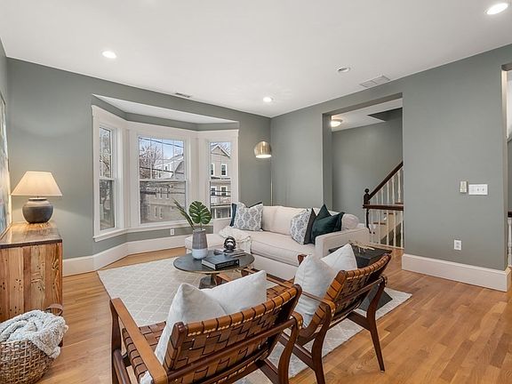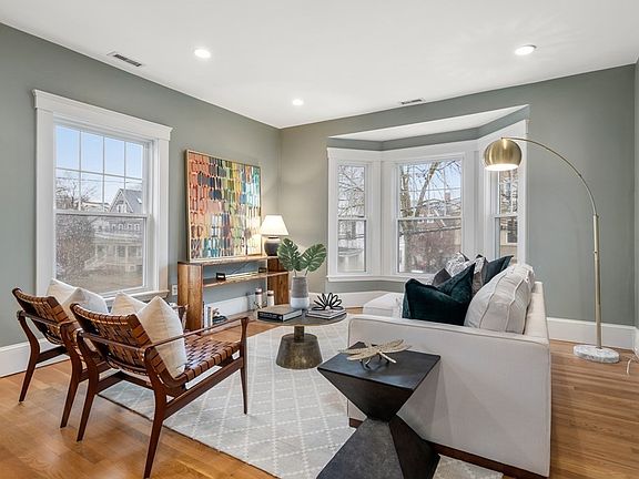 Ideally located between Mass Ave & Broadway in the heart of E. Arlington, this 3+ bedroom duplex is not to be missed. A private entrance w/mudroom leads you directly to the 2nd floor, where a large sun-filled living/dining room opens to the eat-in kitchen with butcher block island, plentiful cabinet space, and access to a rear balcony. Main level is complete with a generous-sized bedroom, marble floored full bath and dedicated office space w/French doors. Huge primary suite on 3rd floor features a spacious bathroom, two walk-in closets, new high-end carpeting, and abundant natural light through 2 skylights and French doors leading to another private balcony. A third bedroom, full bath & laundry are also located on the top floor. Out back is a shared patio and 2 assigned parking spaces. Central A/C throughout & large private basement storage. Located less than 1 mi to Alewife Station, 1/2 mi to the Minuteman bike path, around the corner from coffee shops, restaurants & more.