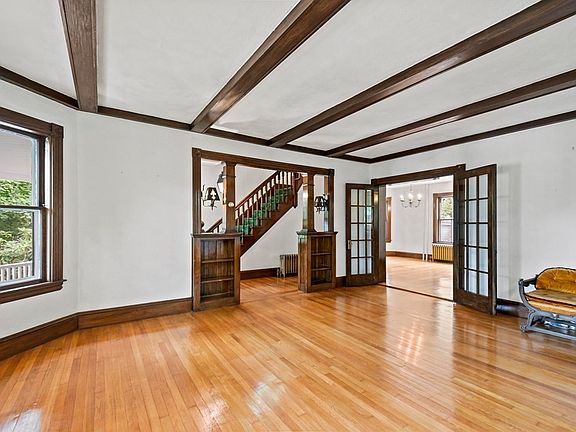 RARE opportunity to own a unique Antique Victorian style home in sought after Central Square neighborhood of Woburn! Offering over 2,700 SqFt, 6 bedrooms, 2 bathrooms, over a half acre of land, private backyard, & a 2 car garage! Before entering, take in the incredible exterior of the home w/ fresh paint, a gorgeous wrap around, covered front porch & parking for up to 5 additional cars! Inside, find character and attention to detail in every room. Features such as built in cabinetry, beamed ceilings, gleaming hardwood floors, double French doors, & stain glass windows will impress! The main living level offers a spacious & sundrenched living room, formal dining room & kitchen with a center island & ample cabinet space. Up one of the two staircases, find 4 bedrms, including the main suite w/ walk in closet, and a full bath. The third floor offers 2 add'l bedrms- great potential for home office - as well as storage space!