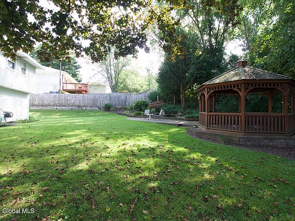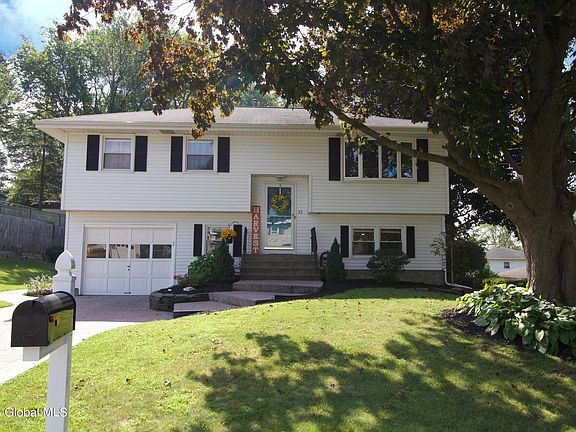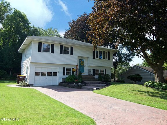 Opportunity awaits as this stunning remodeled 3 bedroom 1.5 bath Colonie home located in a fantastic location hits the market! This home features a gorgeous eat in kitchen with corian countertops and stainless steel appliances! Large sun filled living room with gas fireplace, beautiful gleaming hardwood floors, sharp full bath with granite and double vanity, large family room with second gas fireplace, 1st floor laundry room, office, inviting entry with ceramic tile, large primary bedroom, central air, garage! Awesome lot with stamped concrete driveway and walkway! Private yard with 2 Koi ponds, paver patio and elegant gazebo! I must see that will not last!