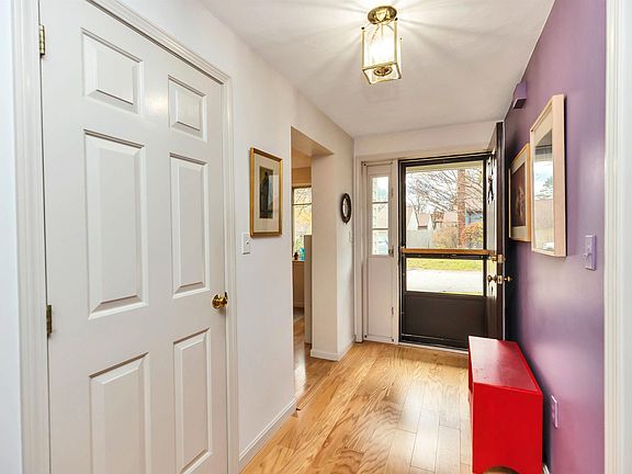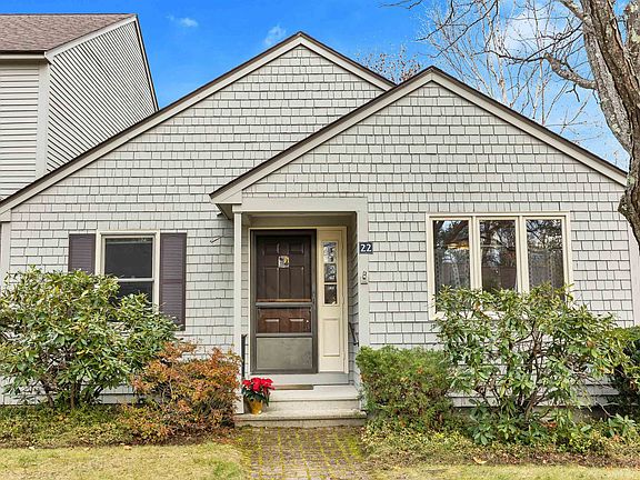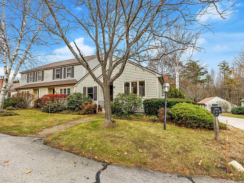 Enjoy one-level living in Peterborough! Beautiful and stylish end-unit condominium features 2 bedrooms and 2 bathrooms with additional living space downstairs. The front entryway leads to a bright kitchen with a breakfast nook and painted cabinets. Continue into the dining/living room where the vaulted ceilings and wood-burning brick fireplace create a cozy ambiance. Glass sliders open to a spacious and relaxing three-season porch. There is central air conditioning for comfort in warmer weather. The primary bedroom en-suite has large closets and a built-in bookcase. Admire the quality flooring and tasteful paint choices throughout the first-floor living areas. The washer and dryer are off the hallway, along with another full bathroom and a guest bedroom. Walk down the carpeted stairway to the finished basement and you will see the recreation room and a potential third bedroom or office with a wood stove and plenty of closet space. Outside, the pathways wind around landscaped surroundings. The one-car detached garage comes equipped with an automatic opener. Residents of this community are minutes from all of the town's amenities: theater, arts, shopping, restaurants, library, parks, and scenic beauty. New roof in 2023. $365/monthly fee. $1,500 one-time buy-in fee.