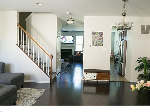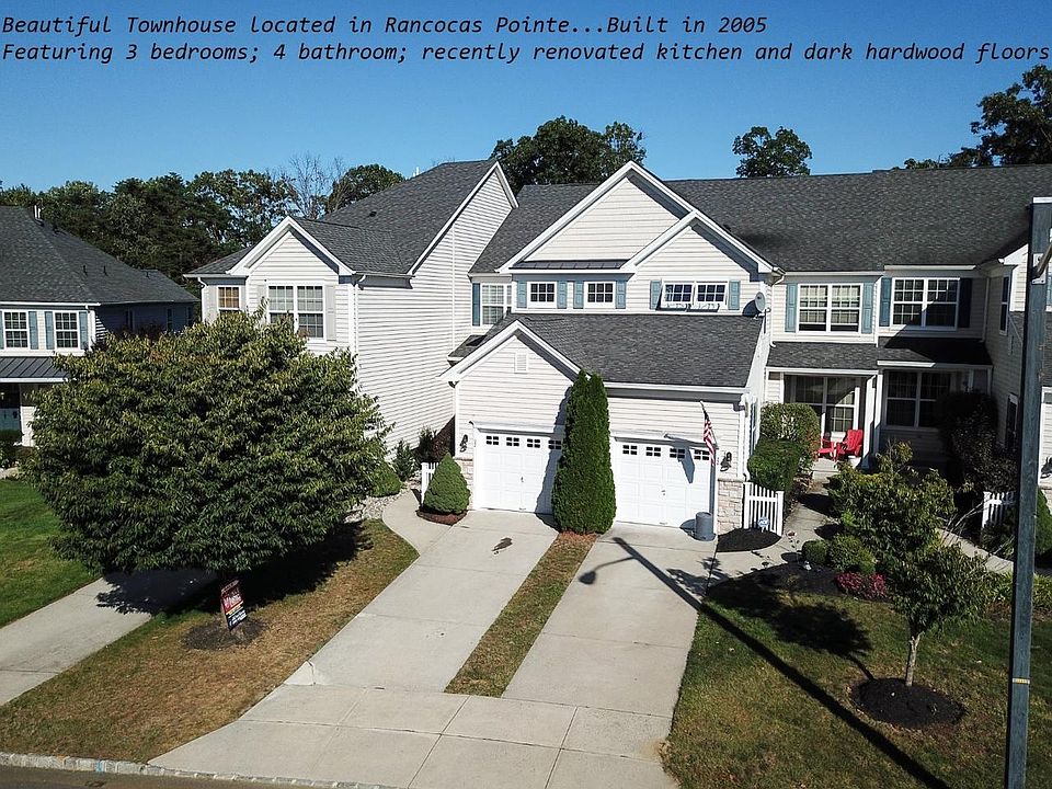 Welcome to Creekside at Rancocas Pointe built by JS Hovnanian & Sons. This Waterville model is sure to please with you with its spacious, open floor plan and designer options. The covered porch creates a feeling of home before you even walk through the front door. Entire first floor offers hardwood flooring including the steps to the second floor and the upstairs hallway and are newer and done to the d~cor by sellers.Enter the large living room with its high ceilings and crisp d~cor with newer hardwood flooring. Recessed lighting abounds throughout the home, including the adjacent open dining room. Kitchen offers upgraded cabinetry, granite counters, double square bottom sink and elevated dining peninsula. The breakfast area and the family room look out to the trees behind. Entertain guests in the inviting family room with its cozy gas fireplace. Upstairs you will discover a master suite with large walk-in closet and peaceful view of the trees. Enjoy the "luxury master bathroom" with its extra deep soaking tub, walk-in shower, and dual vanity. Sharing the hall bathroom are the other two bedrooms which are very bright and offer ample closet space. Looking for convenience? The laundry is also on the upper level. The finished walk-out basement offers plenty of space for everyone to spread out and enjoy the game or perhaps some pool. The extra half bath in basement also adds even more convenience and keeps the party downstairs. Sliding glass doors lead to the patio. And you will still find plenty of storage space here. Forget about coming home in snowy weather...just pull right into the one car garage. This home is truly move-in ready. All you need to do is bring your belongings and call this one, "Home." Home was built with energy efficient appliances by the builder. Minutes to 295 and major highways!!