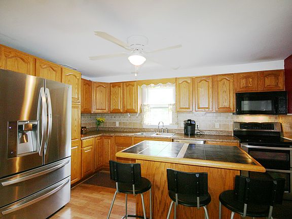 3 bedroom, 2 bathroom home with updated kitchen featuring a center island and new counter top/tile backsplash. Huge master bedroom with 3 closets! Full basement with finished room. Nice deck overlooks a good sized yard with above ground pool!