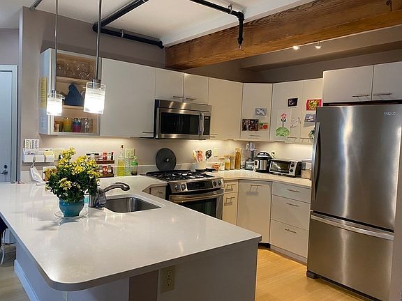 - Features: Beamed Ceilings, Flooring - Hardwood, Countertops - Stone/Granite/Solid, Open Floorplan, Stainless Steel Appliances, Gas Stove