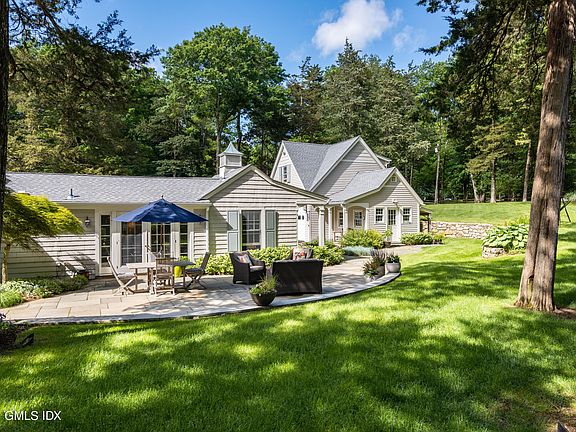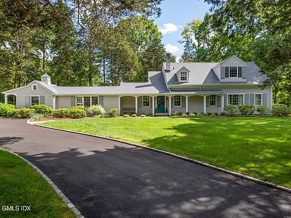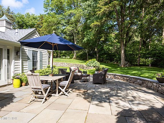 Charm abounds in this spectacular turn key home on a gorgeous, landscaped acre in North Street school district. Extraordinary and very large Great Room with over 10 ft Coffered Ceiling & large FP. Family room with beamed vaulted ceiling & French doors opens to lovely large terrace surrounded by perennial gardens. Den/office with wet bar. Formal dining room with bay window. Modern farmhouse-style kitchen includes large breakfast area with built-in banquette and French doors leading to the terrace. A terrific mudroom & separate laundry room both have handsome brick floor. Master bedroom & bath plus 3 bedrooms, 1 hall bath, downstairs powder room. 2 car detached garage with attic storage and attached first floor studio. Beautiful home in an excellent location.