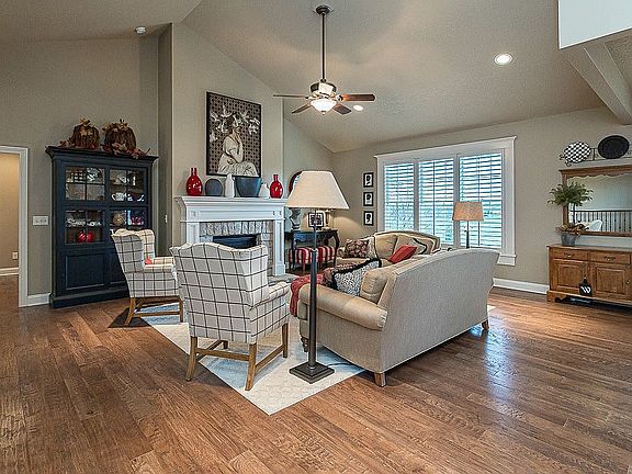 This beautiful ranch is located in a family-friendly neighborhood, close to Interstate 80 access and minutes from the TBK Sports complex. House sits near hole 1 of the Pebble Creek Gold Course. Neighborhood is a golf cart friendly community. The main level has hardwood floors, vaulted ceiling, and features a fireplace. Also on the main level are 2 bedrooms, 2 full baths and laundry. The kitchen features hardwood floors, granite counters, tiled backsplash, stainless steel appliances, pantry and breakfast bar. Appliances stay with the home. The master bedroom is located on the main level and features hardwood floors, tray ceiling, separate sitting area and walk-in closet. The attached master bath includes tile floors, solid surface counters and tiled shower. The finished lower level features a wet bar, 2 bedrooms, full bath and storage area. Outside you'll find a sun room and patio overlooking the yard.