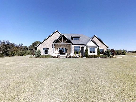 Custom built 4 or 5 bedroom, 3 bath home on 3.37 acres. True masonary fireplace in family room with 17 ft beamed ceilings, wired for surround sound, hardwood and ceramic in living areas, large kitchen with granite and stainless appliances, gas cook top. Two dining areas including a large formal dining room. Spacious master bedroom, his and hers closets (one is a safe room), 6ft soaker tub, double vanities, large tile shower with sprayers. 1000 gallon buried propane tank for cooktop, outside fireplace, and heater in shop. Easy to add additional generator. Double sliding doors open to covered outside living area with rock fireplace. Many upgrades including extra insulation, energy efficient windows, Upstairs is additional living area and large bedroom. Unfinished bonus room above garage currently used for storage.