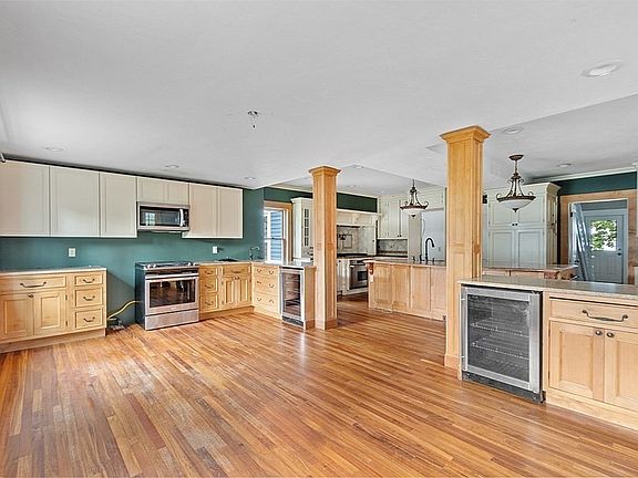 Do you need lots of sleeping space, home office space for remote work, or multigenerational living space? Welcome home. This property has been remodeled in 2017 w/ new roof, exterior painted, heating system, updated electrical, plumbing repaired, exterior doors, kitchen in 2003 & new sewer line. Enter into the MASSIVE kitchen w/ 2 sets of gas stoves, wall ovens, dishwasher and loads of cabinet/counter space. 1st floor also features 2 livings rooms w/gas fireplaces, dining room, 2 offices & 1/2 bath all with beautiful hardwood flooring. 2nd floor offers Main bedroom, f-bath w/laundry, 2 add'l bedrooms, another laundry room w/2 more bedrooms & bonus rooms on the 3rd floor w/brand new carpeting. Enjoy the wrap around farmer's porch or backyard fire pit for outdoor entertaining. 1-car garage, plenty of parking and access close to downtown amenities or Rtes 12 & 140.