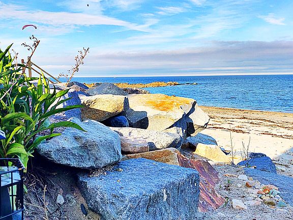 On the Beach!!! Your back stairs end in the sand. Nestled in Brant Rock, on the Green Harbor Line about 35 minutes from Boston or Cape Cod, this well maintained, turnkey home features 3 bedrooms plus a small kid's loft and 2 full bathrooms. The house is two levels, and has a rear walk out that goes directly down only 8 porch steps into the sand on the beach. It sits on a quiet beach that changes daily with the tide. Some days have all sand, some days show thousands of pebbles and rocks, and some days draw calm waters or big waves. Great for kids. This private cove is yours, however you can always just drive a little further up the beach (north or south) to Green Harbor Beach, or Rexhame for larger beaches with larger crowds. First Floor: Downstairs you'll find a spare bedroom with a queen sized adjustable fold-up futon (making this room capable of being a bedroom for a couple, or to serve as a second TV living room for the kids.) The first floor also has a wide hallway that doubles as a small sitting room. There is another bedroom on the first floor with 2 twin size bunk beds (to sleep four people or kids) and a full bathroom with shower is also on this floor. Second Floor: The open and connected kitchen and TV living room are on the 2nd floor overlooking the Atlantic Ocean, and a skylight pours over them bringing abundant natural light during the day. The kitchen has some recent updates. The master bedroom is also located on this floor with a queen size bed. There is a full bathroom with a shower. This floor also accesses a small stairway to a "child's loft." This little area is a perfect "cubby play area" for kids, or a sleep space for them. The house is convenient to Green Harbor Marina, golf, the Fair Grounds, restaurants, shopping & more! All renters will receive a welcome packet with information on local food and night life. This house sits just a short walk (or near instantaneous drive) to The Point restaurant, which is famous for it's seafood, outside roof deck, and bar open until 11pm nightly. And of course Brant Rock center has plenty of dining and bars and essentials (Haddad's, The Jetty, Venue II, etc).