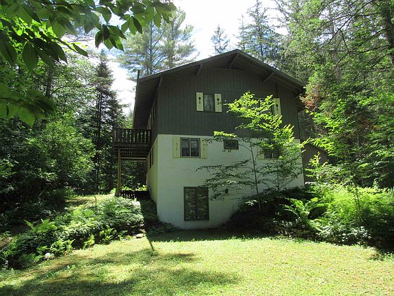 Stratton Wald chalet, minutes to Stratton and Bromley ski resorts. After parking in the one bay garage, enter the home to a mud room with tile floors. All three bedrooms are on the lower floor, one in each back corner and the primary bedroom suite with a sauna. There is an extra room that could be used as a game room, office, or extra bedroom. Moving upstairs, the home in an open concept chalet style through the living room, dining area, kitchen, and additional sitting area. This upper floor has big windows and a fireplace. A slider opens to the wrap around deck that overlooks the front yard.
