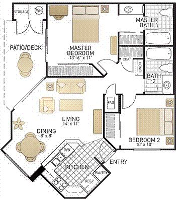 This top floor 2 bedroom/2 bathroom has a spacious open floor plan with TONS of natural sunlight. Corner location with vaulted ceilings next to Woodbridge Community Park. Kitchen appliances included with 24 hour emergency maintenance. Neighborhood Description Next door to Woodbridge Community Park and San Diego Creek trails. Woodbridge Village Association membership to lakes, pools, parks and more! Close to freeways and public transit. Walking distance to shopping, dining and entertainment.