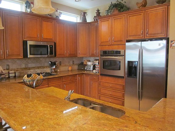 Popular Expanded Bayhill! Stucco exterior, cherry wood floors thru-out, level 5 kitchen, granite counter w/ ogee edge, SS appliances, heated ceramic floor, ceramic backsplash, recessed lites, gas FP, fixed attic steps - floored & sheetrocked, built-in in Study w/ Granite top & HW floors, ceiling fans, NEW microwave & kitchen sink, BRAND NEW carpet in Master BR w/ sitting room & professionally organized closet, the home you've been waiting for is here! Award winning clubhouse, 9-hole golf course!
