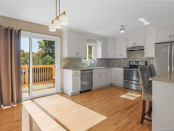 Beautifully updated home on the inside and out in desirable Springdale neighborhood. Open floor plan and hardwood on the main level. Large eat-in kitchen complete with new cabinets, granite counters, marble back-splash and stainless-steel appliances. Living room has vaulted ceilings and one of three new ceiling fans that were installed. Both bathrooms have new vanities as well as new tile and shower stall in the one on the lower level. Large lower level consists of family room with fireplace and two possible bedroom/ offices. Laundry room has brand new washer and dryer as well as new hot water heater. Whole house has recently installed Central A/C and new Windows. New roof, painted exterior and landscape gives this house great curb appeal. Detached 2 car garage makes the house complete. Other upgrades include, new light fixtures, doors and more. This house has all new big ticket items, an exceptional buy. Walk to train, close to restaurants and shops.