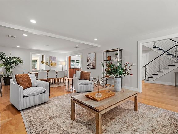 Sited on nearly 1/2 an acre just blocks from Belmont Hill School, this renovated residence offers a sprawling floor plan designed for single level living plus additional bedrooms/work/play spaces on the upper & lower levels. Through the contemporary double height foyer, the formal living room flows into the dining room. The open-concept chef's kitchen showcases striking custom cabinetry, high-end appliances, stone countertops, a beverage center, and pantry. The family room off the kitchen opens onto the deck & patio, which are anchored by a stone fire pit. The massive primary suite with two walk in closets has a spa-like 4-piece bath with a jetted soaking tub. 2 additional bedrooms plus a bathroom on this floor. Upstairs houses 2 more spacious bed/bath suites, a study area, and chic loft. The lower level houses the playroom, media room, gym, office & storage. The property's professionally landscaped grounds feature raised planting beds, many species of trees and curated flowers.