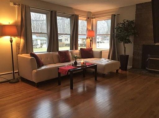 PICTURE PERFECT RANCH IN SUCH A SWEET NEIGHBORHOOD OFFERING SO MUCH FOR SO LITTLE! Warm & welcoming living room w/pellet stove insert & refinished hardwood floors. Updated kitchen boasts stainless steel appliances and double sliders to outdoor spaces. Entertaining made simple with this accommodating, open flow. Enjoy summer breezes on your screened in porch which overlooks sprawling side yard. Deck leads to back yard with partial vinyl fence and a large shed. A wonderful finished basement with its own heat zone offers plenty of space for your family room and a separate office, sitting area or exercise area. 1 car garage. This home sits on almost 3/4 of an acre, double lot. Minutes to town center. Easy commuter location, quick to major routes. And just a hop, skip and a jump to Hillcrest Country Club. Don't miss out! ***OPEN HOUSE SUNDAY 12:00-2:00***